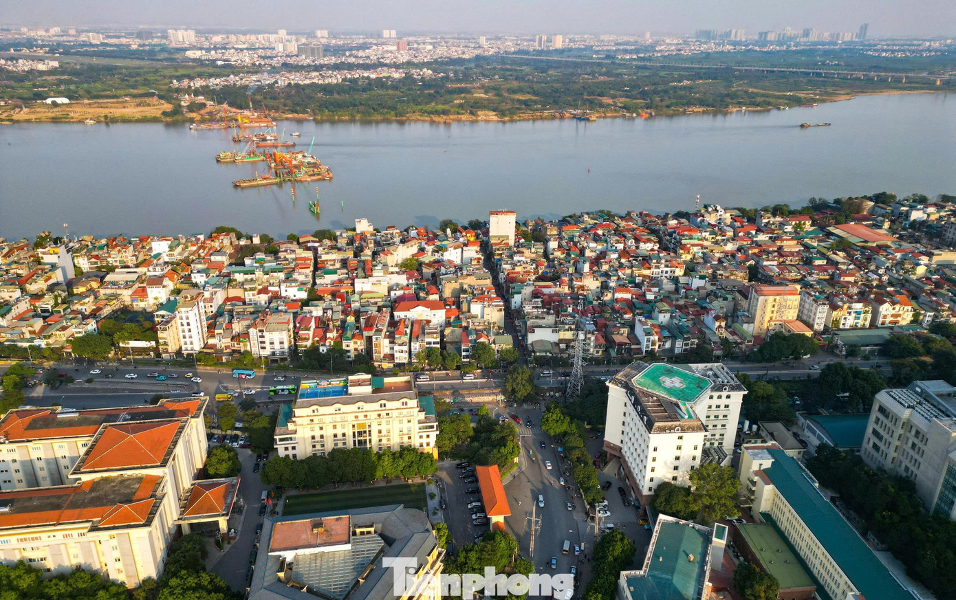 Đại công trường cầu Trần Hưng Đạo 16.000 tỷ đồng nhìn từ trên cao - Ảnh 1.